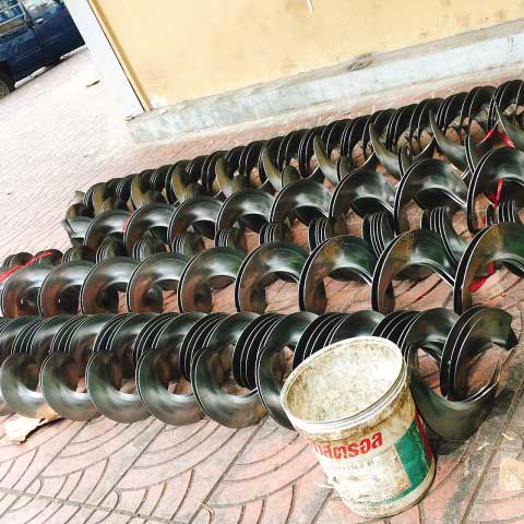 - ใบสกรูแบบรีดยาวไม่มีรอยต่อ - โดยมีลักษณะเกรียวรีดยาวเนียนไม่มีรอยต่อ มีข้อดีคือซ่อมบำรุงง่าย และประหยัดเวลาในการทำงาน